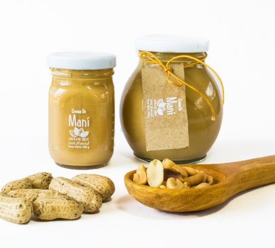 En presentación de 100 gr o 250 gr y en frasco de vidrio. Crema 100 % de Maní.